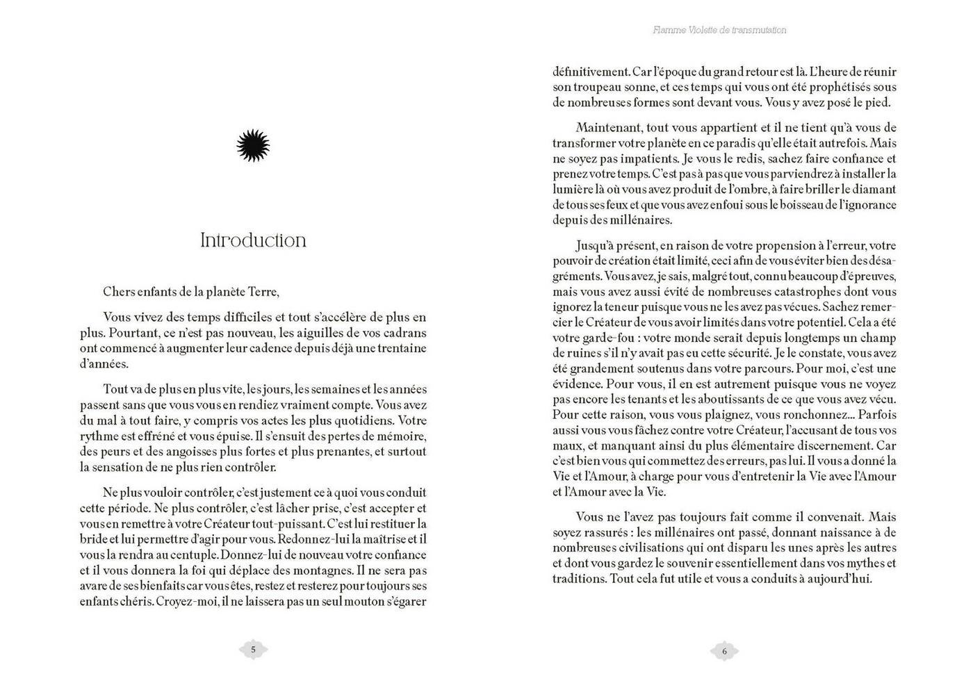 Maître Saint Germain, détenteur de la Flamme violette, offre ici douze décrets pour vous accompagner en toute confiance dans la transmutation de l’humanité qui a déjà commencé. Avec bienveillance et impartialité, le maître ascensionné vous indique pourquoi et comment utiliser la Flamme violette au quotidien, afin de retrouver la Lumière divine en vous et ainsi cheminer dans l’Amour et dans la Vie. « Maintenant, tout vous appartient et il ne tient qu’à vous de transformer votre planète en ce paradis qu’elle était autrefois. Mais ne soyez pas impatients. Je vous le redis, sachez faire confiance et prenez votre temps. C’est pas à pas que vous parviendrez à installer la lumière là où vous avez produit de l’ombre, à faire briller le diamant de tous ses feux et que vous avez enfoui sous le boisseau de l’ignorance depuis des millénaires. » Maître Saint Germain