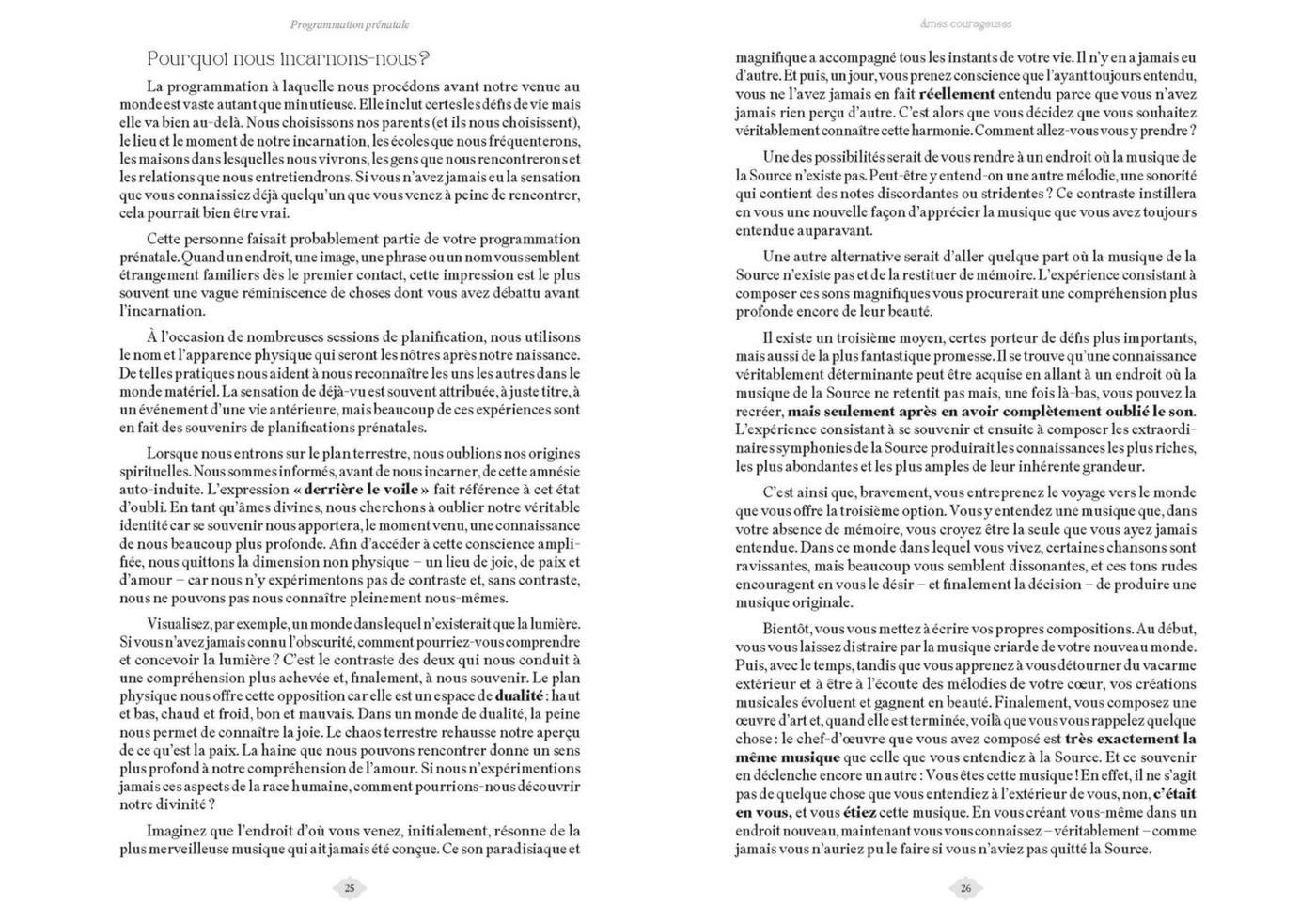 Si derrière nos expériences difficiles se dissimulaient des objectifs que nous aurions programmés avant notre naissance ? Serait-il possible que nous ayons choisi les événements, leurs circonstances et les relations qui jalonnent notre vie ? Tout au long de ce livre, vous allez découvrir l’histoire de dix personnes qui, tout comme vous, ont planifié les défis marquants de leur existence avant leur venue au monde. En s’appuyant sur la collaboration de quatre médiums et channels, Robert Schwartz révèle ce que ces personnes ont décidé et pourquoi. Il présente leurs séances de programmation prénatales telles qu’elles se sont déroulées. Vous découvrirez pourquoi chacun de nous choisit de connaître des défis difficiles (maladies, handicaps, dépendances diverses, perte d’un être cher, accidents violents) ; vous comprendrez comment, en tant qu’âme, vous avez élaboré votre vie ; vous vous rendrez compte que les personnes présentes dans votre vie le sont à votre demande, mus par leur amour pour vous et pour ainsi jouer les rôles que vous leur avez assignés ; vous pourrez consciemment utiliser vos expériences pour votre évolution personnelle.