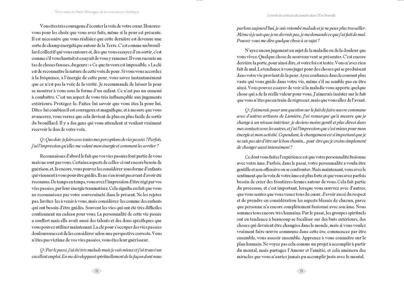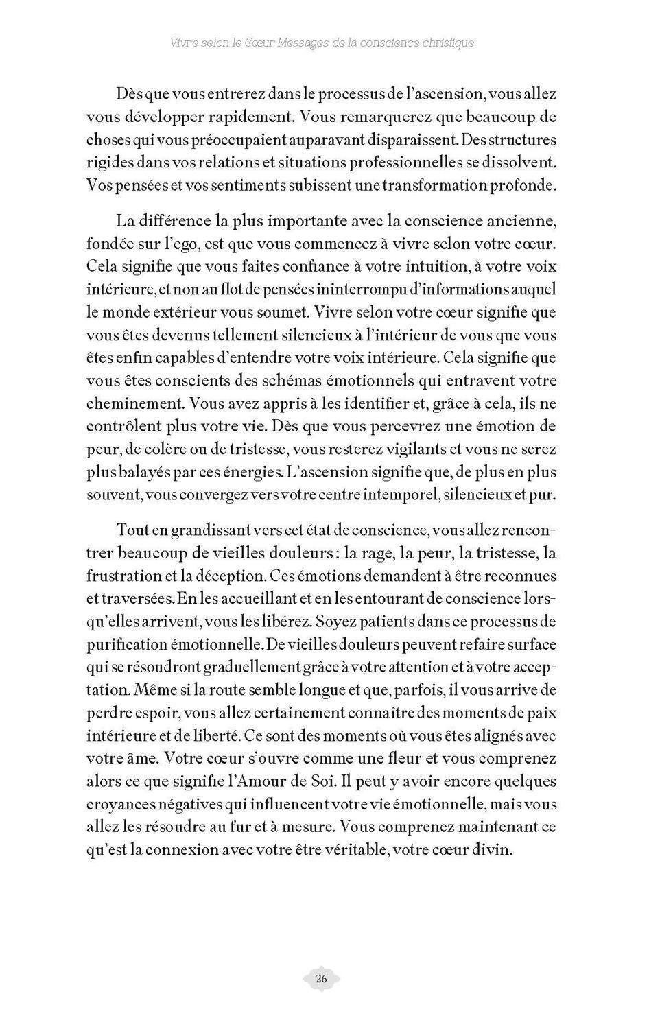Vivre selon le coeur, c’est vivre en répondant à l’appel de notre âme. L’appel de notre âme se reconnaît aux sentiments de joie, de paix et d’inspiration qu’il nous communique. Néanmoins, oser faire confiance ànotre coeur implique souvent de sauter dans l’inconnu. Il se peut que nous soyons alors confrontés à des peurs viscérales concernant notre valeur personnelle et notre capacité à suivre notre chemin. Ce livre nous offre les messages inspirés par channeling de Jeshua, de Marie et de Marie Madeleine pour vivre pleinement qui nous sommes. Il est là pour nous encourager à franchir le pas et à affronter et dépasser tout ce qui nous empêche d’écouter la voix de notre coeur.